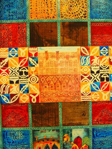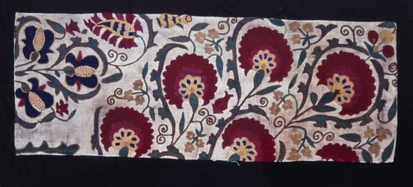 Curator: This object, housed here at the Rijksmuseum, is cataloged as "Fotoalbum van een onbekende Nederlandse familie met connecties in Suriname en Nederlands-Indië," created sometime between 1900 and 1925. The album cover, in particular, is what draws our eye. Editor: My first thought is "decorative explosion!" The variety of shapes and colors, overlaid on what appears to be a coarse, almost burlap-like background, creates such a vibrant surface. Curator: Yes, it's an intriguing blend of what we might call "decorative art" elements. Consider its likely place in a Dutch household with ties to its colonies. These bold patterns signal an embrace of modernity filtered through an exoticized lens, reflecting both colonial power dynamics and shifting aesthetic tastes in Europe at the time. Editor: It’s certainly a mixed-media piece. Collage elements are very apparent. Look at the way the individual shapes seem slightly raised, casting subtle shadows. It introduces depth to what could have been a flat, two-dimensional design. The texture of the patterned background is interesting; perhaps a printed textile or a specially treated paper? Curator: Indeed, the tactile quality points toward experimentation with new materials. Given the era, the family album was transitioning from an elite, studio-produced product to a more accessible, personalized keepsake. Albums like this show how visual culture absorbed and reworked mass production and global trade. Editor: The pattern almost verges on abstraction. Even though there's repetition, the lack of clear narrative disrupts any immediate representational reading. This is a surface meant to be felt, enjoyed for its sheer visual dynamism. It really engages the eye; its composition alone gives it visual density. Curator: Exactly. While seemingly simple in its construction, the album cover embodies complex dialogues about cultural identity, colonialism, and the changing landscape of visual expression in the early 20th century. Editor: A remarkable little gem, a crossroads where design and domestic history vividly intersect. It’s amazing what an album cover can convey!