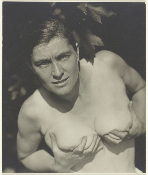 Editor: This photograph, titled "No Rules," Coney Island, New York, was captured by Sid Grossman around 1947-48 and rendered as a gelatin silver print. There’s an almost startling intimacy to the image. The man's exuberant smile really draws me in. What strikes you about it? Curator: Note how the high contrast in the gelatin silver print serves to emphasize the interplay of light and shadow across the bodies. Grossman's strategic composition – the frame tightly cropped around the figure, focusing on form and texture – pulls our gaze inward. How does that focus affect your reading? Editor: It certainly gives a sense of immediacy. It almost feels like the man's smile is aimed directly at *me*, the viewer. Curator: Precisely. And this manipulation of form speaks volumes. Grossman avoids traditional landscape or posed portrait conventions. He’s acutely interested in the aesthetic of the subject matter - the surface, the gradations of tone - much more than narrative details. How do you think the almost palpable *surface quality* affects your reading of emotion? Editor: I see what you mean. By focusing on the details of the texture – the grain of the sand, the light reflecting on the skin – the photograph becomes about the present moment, about *being* in this scene rather than telling a story. I’d initially interpreted the smile as joyful, but considering your interpretation I can see that it could easily be read as simply an expression, no emotional loading implied. Curator: Exactly. The emotional resonance stems from that close reading, through considered examination of tone and composition. The “rules” of representation have been broken down, it's about that immediate tactile sensation and the relationship between shadow and light in capturing his gaze, which results in such compelling visual impact. Editor: I now view it more like a composition study! It's a study of texture and a range of light in portraiture with minimal story or societal message behind it. Curator: Indeed, it's where aesthetic choices can unlock new understanding, prompting the viewer to be actively engaged.