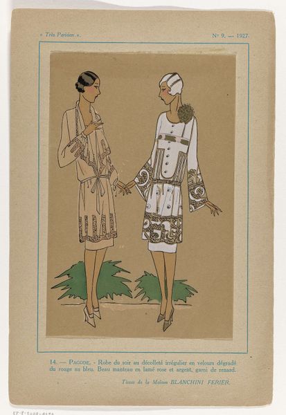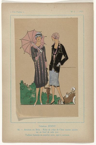 This fashion plate, made in 1927, is one of a series from an unknown artist, printed on paper. It’s an image that thrives on process. The artist lays down a foundation of flat colour, then adds details in thin, economical lines. Look at how the artist defines the dresses. The colours are muted, almost pastel, which gives a sense of softness and sophistication, a contrast to the angular lines of the dresses. The dark lines create a frame, which emphasizes the colours within. It’s not so much about realism, as about creating a mood. The way the artist used lines, you can almost feel the texture of the fabric, even though it's just on paper. It’s an ongoing conversation, between the artist, the materials, and us. Much like the way Sonia Delaunay used colour and form to create her textiles, this feels like an exploration of art as a space for experimentation and play. This piece shows us there is always room for surprise and unexpected beauty.