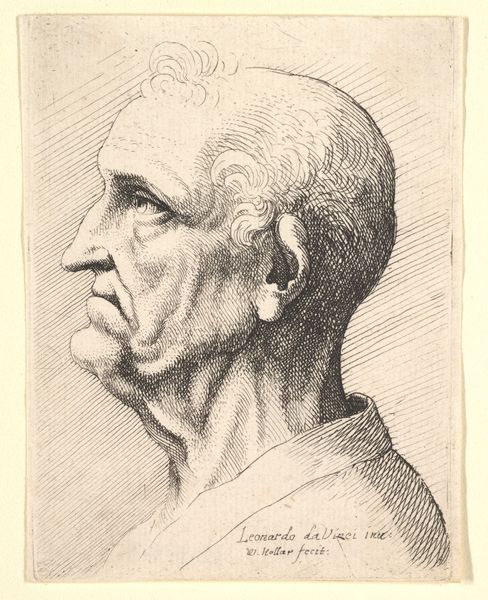 Editor: This is "Head in profile," a drawing from 1827 by Theodor Pelissier, rendered in pencil and chalk on paper. I'm struck by the precision of the lines, creating such depth with minimal tonal variation. What do you notice, looking at it from a formalist perspective? Curator: Initially, the artist’s manipulation of light and shadow catches my eye. Observe how Pelissier uses chiaroscuro, employing sharp contrasts to define the planes of the face. Notice how the linear precision contrasts the subject's volume, achieved through carefully layered hatching. How does this tension between line and form affect your reading of the piece? Editor: It's interesting, I hadn't thought about it in those terms. The delicate hatching definitely softens what could have been a harsher, more graphic depiction, softening his features. It makes him seem… contemplative. Curator: Indeed. Now consider the composition itself. The artist isolates the head in profile against a neutral ground, eliminating any distracting contextual elements. The composition forces us to confront the essential formal elements of line, tone, and form. What does this focused presentation suggest to you? Editor: It suggests the importance of the study of form, almost like a scientific investigation. This is a great opportunity to observe how light and shadow interact with the planes of the face. Is it a pure exercise, or does it also suggest something about the sitter’s character? Curator: As a formalist, I can acknowledge but must sideline iconographic readings, or conjecture about the sitter. Primarily, I see a masterful study in artistic technique. Note the skill in rendering subtle variations in texture, from the hair to the skin. Editor: This focus on technique certainly provides a framework for appreciating the artist’s skill. It also gives me an approach to analyze the work, beyond my initial emotive reaction. Curator: Precisely. By engaging in formal analysis, we move toward a deeper understanding of the artistic strategies at play and perhaps find fresh perspectives on portraits such as these.