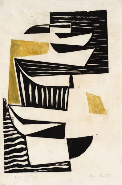 This is "Chelle" by Victor Vasarely, and it’s made with paint, probably oil or acrylic. I’m really drawn to the limited palette here. The way he uses black, white, and hints of burgundy creates a push-pull effect. The shapes aren’t just sitting there; they feel like they're moving, interacting. I love how the hard edges and geometric forms have this sense of playful movement, it feels so alive! I’m thinking of the shapes in the center that feel like they are tumbling out of the artwork towards you, as a viewer. There’s a real economy of means here, which reminds me of Piet Mondrian's compositions, with their simplified forms and primary colors. But Vasarely really brings this sense of illusion and depth to the surface. It’s like he’s having a conversation with the history of geometric abstraction, but in his own voice. Art isn't about answering questions, but about asking them in new and exciting ways.