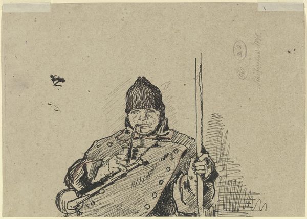 Peter Hansen created this watercolour painting of Il professore cavalieri di Luca, sometime around 1902. There’s something really intimate about watercolours; the way the pigment stains the paper is so visible and immediate. It feels like you're right there with the artist. Hansen's use of thin washes creates depth through layering. Look at the darks around the violinist's jacket and trousers. There's a real attention to light and shadow, but the paint handling is quite loose; it's like he’s trying to capture a fleeting moment. I love the way he renders the face, with soft, blended tones, but the hands holding the violin feel more defined, more active. This reminds me a little of Whistler's portraits, particularly in the muted palette and the focus on capturing a mood rather than just a likeness. It’s like Hansen is saying, "Here’s a person, a moment, a feeling...what do you make of it?"