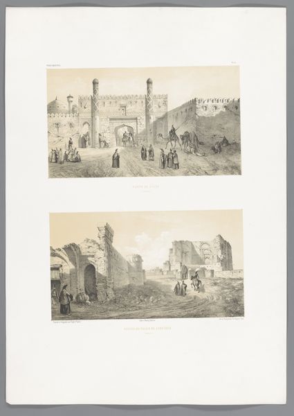 François Stroobant's rendering of Egyptian ruins captures a stark scene dominated by vertical thrusts of ancient architecture set against the pale sky. Linear precision defines the fragmented pillars and obelisks, creating a powerful contrast between human presence and monumental decay. The composition reflects early 19th-century interests in the sublime and the picturesque. The decaying structures evoke a sense of time's relentless passage. The people among the ruins serve as a scale for the enormity of the architectural remains. Stroobant’s skillful rendering of light and shadow enhances the play between form and absence. This aesthetic approach invites contemplation on the nature of civilization and history, prompting us to consider how we assign value and meaning to cultural relics. The ruin becomes a signifier, laden with narratives about power and temporality.