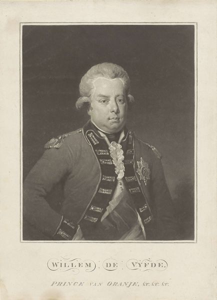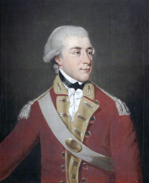 Curator: Goya painted this portrait of Ignacio Garcini y Queralt in 1804, capturing him in his military attire. What's your initial reaction? Editor: Strikingly subdued! The composition seems dominated by this figure cloaked in somber tones, emerging from an almost palpable darkness. The eye is drawn, obviously, to those bright reds and the stark white of the sash, which adds tension. Curator: Indeed. The painting speaks volumes about the social position of its subject. Garcini was an important military figure during a turbulent time in Spanish history. Note the regalia; these symbols speak to a man deeply entrenched within the power structures of his era. Editor: I am taken by the light. The contrast is expertly done to bring a sense of immediacy. Observe how Goya's handling of light articulates the textures—from the velvet-like coat to the metallic sheen of the sword hilt. Curator: Goya’s portraits often went beyond mere representation. In Garcini’s gaze, there’s a hint of vulnerability, almost a quiet skepticism that counters the outward displays of power, don't you think? It reminds us that these figures are individuals caught within larger historical tides. Editor: It does offer a very intimate look! However, Goya clearly structured the portrait in a conventional form with very controlled brushwork. The red accents and strategically placed decorations draw one’s eyes through all parts of the composition, resolving the painting quite neatly. Curator: He had a very interesting role within the Imperial structure. Garcini had an extremely challenging career of service under the Crown; it seems plausible Goya meant to depict the weary humanity that went along with it. Editor: The portrait leaves an ambiguous impression; its formal strategies reflect those uncertainties. I think both are at play in how one approaches this work, don't you think? Curator: Absolutely. Goya doesn't shy away from these nuanced interpretations, and this is precisely what allows his work to endure. Editor: Ultimately, it’s an evocative and intriguing visual, speaking to formalist elements and also cultural-historic context.