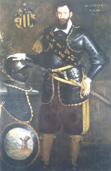 Editor: This is "Portrait of a Wealthy Peasant," painted in 1903 by Niko Pirosmani. It’s currently hanging in the Art Museum of Georgia in Tbilisi. I’m really struck by the man’s serious expression and how it contrasts with the rather whimsical vineyard behind him. How do you interpret this work? Curator: Ah, Pirosmani! He's a kindred spirit, painting from the gut. This portrait...it's more than just a picture, isn’t it? That serious gaze you mentioned, juxtaposed with the bounty of grapes…it’s like life itself, a blend of the sober realities and the joyful possibilities. Look closer; the way he uses impasto adds texture, making the peasant seem almost tangible. What feelings do you think the landscape surrounding the character are eliciting? Editor: I see what you mean about making it tangible. It feels less formal than some portraits of that time. As for the background, it has almost naive quality to it. Peaceful, perhaps? Curator: Exactly. Naive but not artless! There's an earthiness to the folk-art style that complements the peasant's wealth, and together it transcends typical realism. Consider the historical context, too; Georgia at the turn of the century. A time of transition, where the old ways were meeting new aspirations. Is the artist referencing that struggle somehow, perhaps subconsciously? Editor: That’s interesting – a blend of traditional values and a desire for prosperity, visualized on canvas! I hadn’t thought about that. It makes me look at the painting in a totally different way now. Curator: Yes, this painting is one that unfolds the more you dwell in it. He makes us question our notions of success, value, and even beauty. You may also wish to consider how orientalist ideals have impacted the visual choices apparent within the artwork. It leaves us wondering what makes a man truly "wealthy". Editor: I will certainly reflect on that as I observe more art. I definitely have more of an appreciation for the layered approach and all the social contexts this piece holds.