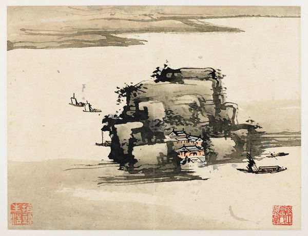 Ding Yanyong created 'Zhong Kui Marrying off His Sister' using ink and color on paper. The composition is immediately striking in its diagonal arrangement, with a boat cutting across the pictorial space, creating a dynamic, asymmetrical balance. The artist juxtaposes the grotesque figures of Zhong Kui and his demonic entourage with the solemnity of the sister’s wedding procession. This contrast isn't just thematic; it is formal. Look at the deliberate use of saturated colors for the demons versus the muted tones for the bride. This color differentiation, along with the expressive, almost frenzied brushstrokes in the demons' depiction, challenges traditional aesthetics, and perhaps even societal norms. The spatial arrangement, with figures overlapping and receding, adds to the painting's complexity. Ding Yanyong prompts us to question fixed meanings, inviting us to see the world, and perhaps even the spirit world, as a site of fluidity, transformation, and re-interpretation.