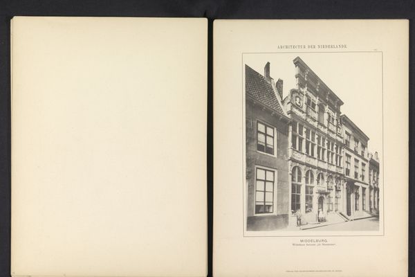 Editor: We are looking at “Gezicht op het Stadhuis van Kampen,” which translates to “View of Kampen City Hall,” dating back to before 1894. The media includes print, etching and photography. It is currently at the Rijksmuseum. The building’s façade is quite striking with those repetitive windows, statues, and elaborate roofline. It feels both grand and slightly imposing. What strikes you most about its construction? Curator: Note the photographic and etched medium. Its subdued tonal range yields to precise articulations of surface texture, of stone versus brick. What semiotic weight do those textural variations carry? Is there any symbolic meaning? Editor: Hmmm. What do you mean by 'semiotic weight'? Curator: Each material evokes a sense. Consider how the rough texture of brick, captured in the etching, contrasts against the smooth finish of the stone detailing. This contrast directs our gaze to particular elements—perhaps highlighting areas of importance or symbolic value. Editor: I see. So the smooth stone might symbolize power or permanence, while the brick is just… everyday? Curator: Precisely! And observe the linear arrangement of the windows. Do the precise vertical and horizontal lines of their design enhance the perceived stability of the structure, giving a rigid frame? Editor: Yes, that certainly lends a feeling of solidity. Curator: Note also the roofline—an elaborate design drawing attention to that portion, indicating its semiotic significance? The cumulative effect speaks to a formal language of civic pride and enduring power, yes? Editor: I think I understand now. Paying attention to those qualities really changes how you see it! Thanks. Curator: Indeed. Nuance resides within the dialogue of form.
