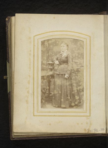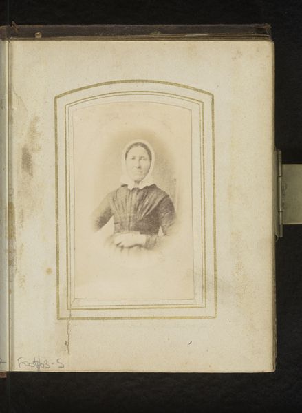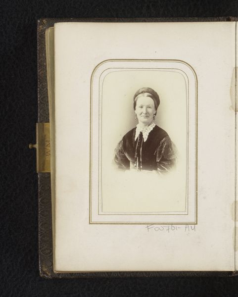 This albumen print of a woman is pasted into a photograph album and was made by Bernardus Bruining in the Netherlands. This unassuming portrait can tell us much about the social conventions of photography and portraiture in the mid-19th century. We can tell from the small size and album setting that this was a private, domestic image, probably a memento of a loved one. This oval portrait is neatly framed inside an album page. While portraits in painting had long been the preserve of the wealthy, photography democratized the format, allowing the middle classes to participate in the culture of commemoration and display. The woman's stern expression and plain dress reflect the sober values of the Dutch bourgeoisie. This burgeoning social class fostered a sense of national identity centered around family and home. Understanding this image requires historical research, from photographic journals to conduct books. Art is not made in a vacuum, but through institutional and social structures.