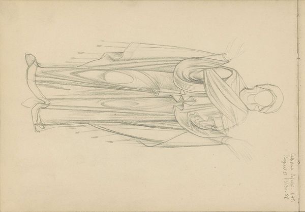 Editor: Here we have Isaac Israels’ "Standing Woman," a pencil drawing done sometime between 1875 and 1934. It feels so fleeting and unfinished. What do you see in this quick sketch? Curator: It's a fascinating glimpse into Israels’ process. I'm immediately struck by the rapid lines. This wasn't about capturing likeness but rather a feeling, an essence. I’m also thinking about how traditional power dynamics played out in portraiture at that time. This feels like a rejection of formal portraiture, doesn't it? Editor: Absolutely, it does! It lacks the detail and posed quality you'd expect. Do you think that's a commentary on the artist's relationship with his subject, perhaps moving away from objectification? Curator: It's a really interesting point. Could it be a conscious choice to resist the male gaze so prevalent in art history? Think about how female figures were often depicted to reinforce patriarchal norms. By not "finishing" the image, is he perhaps denying that possessive act of capturing and defining the woman? Editor: That makes me see it in a completely new light! I was so focused on the incompleteness as a purely aesthetic choice, but now I wonder if there's a deeper social critique embedded there. Curator: Exactly! And consider this: whose stories were deemed worthy of preservation? Sketches like this often offer glimpses into everyday lives that might otherwise be erased from history. How does this incomplete sketch make you feel, knowing that her full story is likely lost? Editor: A bit melancholic, definitely. It makes you wonder about her life and experiences. Curator: Right. It becomes a meditation on representation, power, and the untold narratives that art can hint at. Editor: Thank you, I hadn't considered those angles. Now I see so much more than just an unfinished sketch. Curator: Art invites us to question, to analyze, and to see the world through a more critical lens. It’s not just about what's there, but what's been left out.