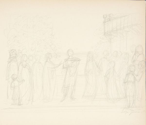 Bartolomeo Pinelli sketched this drawing for Meo Patacca, using graphite on paper. Here, the central figure extends his open hand, palm up, a gesture laden with meaning. Consider this open-handed gesture - it is a symbol of offering, of vulnerability. We see it echoed through time, from ancient Roman orators to Renaissance depictions of Christ. Yet, its interpretation shifts. Is it an invitation, a plea, or perhaps a challenge? In ancient times, it signified honesty and openness, but in other contexts, it can signal submission. The recurring motif reflects our collective memory, constantly reshaped by subconscious desires and fears. This sketch engages us on a deeply human level, stirring empathy, curiosity, and a touch of unease. The gesture of the open hand is a reminder of the cyclical nature of symbols. This motif evolves, resurfaces, and is imbued with new meaning across different eras.
