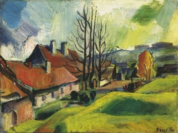 William H. Johnson made "Danish Roadside" with oil paint in Denmark, and looking at it is like watching a painter think. The paint is laid on thick, almost sculpted, in simple strokes. Check out the way he renders those trees, short dashes of green layered over each other to create volume, like a little forest of gestures. The sky is a frenzy of blues and grays, quick strokes that feel like he’s capturing the movement of the clouds, not just their appearance. And that little path cutting through the scene? It's rendered with such a playful, almost childlike simplicity, bordered with dabs of color suggesting flowers. Johnson reminds me of Milton Avery, who also had a knack for boiling down scenes to their emotional essence, leaving out the fussy details. "Danish Roadside" isn’t just a painting, it’s a conversation, an ongoing exploration of what it means to see and feel the world.
