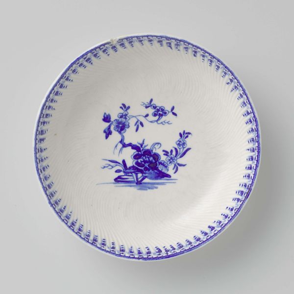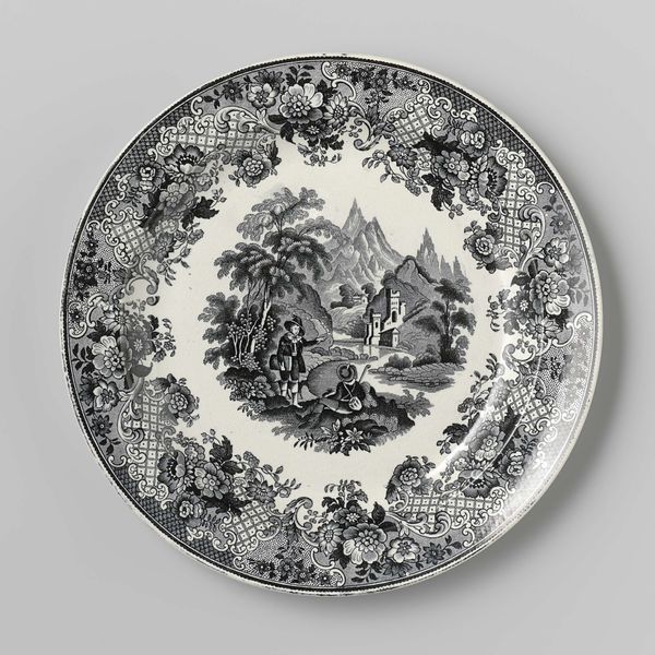 Editor: So, this is Félix Bracquemond’s “Platter with Peonies,” made around 1866 or 1867. It's a ceramic piece, a drawing or print transferred onto the ceramic surface. What strikes me is the contrast between the delicate floral design and, well, the bug and snail! What do you make of that contrast? Curator: It’s fascinating, isn’t it? Think about the social context: mid-19th century France, a burgeoning interest in Japonisme. Bracquemond was a key figure in popularizing Japanese art. How might that inform the imagery here, do you think? Editor: I see a connection! Japanese prints often depict nature, and the peonies definitely feel like that. But the placement of the insects feels a bit…unexpected compared to what I think of traditional botanical illustrations. Curator: Precisely! Consider how these platters were received. Were they seen as decorative objects, elevated art, or something in between? The "imperfect" inclusion of those creatures might have challenged the established hierarchy of art, subtly questioning what was deemed worthy of artistic representation. Do you think this plate may have helped blur those lines? Editor: Absolutely, I now see that the very act of placing these common creatures onto what could have been merely functional tableware, disrupted artistic conventions, especially with japonisme trending and introducing new visual languages. It's as if the plate challenges us to find beauty in the mundane, even on something as commonplace as a platter. Curator: Exactly! This plate demonstrates the period’s experimentation and changing values. The plate, and Bracquemond's other work, invite a dialogue about art's function and purpose in a rapidly evolving world. Thanks for the fascinating discussion. Editor: Thanks for enlightening me. Now I appreciate how subversive something seemingly as simple as a platter can be!