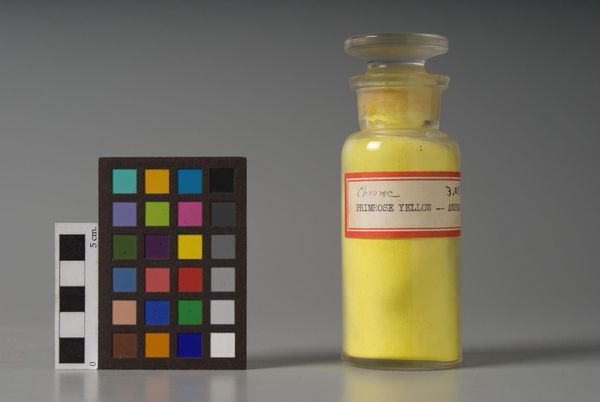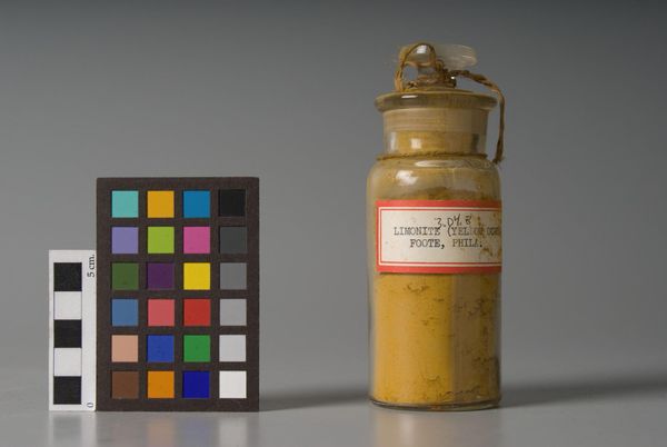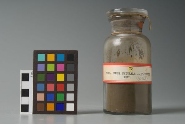 Editor: So here we have "Giallo Ochre Sienna" by Antonio Buonamici, a jar of pigment really, and I'm struck by the simplicity and almost scientific feel to it. What is your interpretation of this piece? Curator: It’s like a time capsule, isn’t it? A tangible link to the past, whispering stories of artists long gone. I imagine them grinding and mixing this very pigment, imbuing their masterpieces with its golden warmth. Editor: That's a beautiful image! I hadn't thought of it that way. Curator: These raw materials are art itself, not just the means to create art. This jar is a muse, frozen in time. Gives me goosebumps! Editor: Absolutely, it changes how I look at the colors in paintings now.
