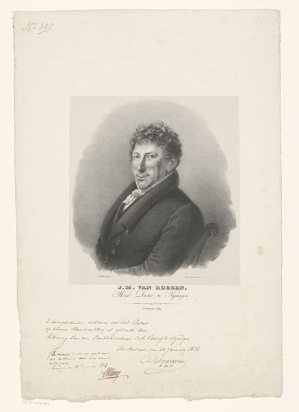 Carel Christiaan Antony Last created this portrait of Cornelis Henricus à Roy using lithography, a printing technique that democratized image-making in the 19th century. Lithography involves drawing on a stone or metal plate with a greasy crayon, then treating the surface so that ink only sticks to the drawn areas. The printmaker then transfers the image to paper. This process allowed for relatively quick and inexpensive reproduction, making images like this one accessible to a wider audience than traditional engravings. Here, the soft, velvety textures achieved through lithography lend a sense of realism to à Roy’s likeness. The subtle gradations of tone capture the details of his face and clothing, emphasizing his status as a member of the Dutch Society for the Promotion of Industry. The rise of lithography reflects broader social and economic changes, linking artistic production to industrialization and mass consumption. By embracing this technology, Last participates in a shift towards more democratic forms of representation, challenging the traditional boundaries between art, craft, and industry.