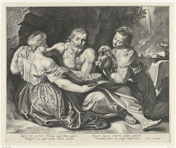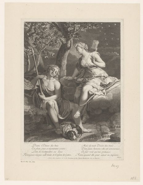 Louis Desplaces made this print, Pyramus en Thisbe, sometime in the 18th century using a process called engraving. This is a printmaking technique in which lines are incised into a metal plate, which is then inked and used to make an impression on paper. The quality of the engraved lines gives the image its character. Desplaces uses hatching and cross-hatching to build up tone and shadow, creating a sense of depth and volume. It is a laborious process requiring a high degree of skill and precision. In this case, the technique is also crucial to how we understand the artwork, and the social context in which it was made. Printmaking, like engraving, allowed for the mass production and dissemination of images. The story depicted, of Pyramus and Thisbe, would have reached a much wider audience than just the aristocratic elite. Through printmaking, classical narratives and moral tales could be circulated, contributing to the shaping of public opinion and cultural values. So, in this engraving, the material and process are not just about aesthetics, but also about the democratization of art and knowledge.