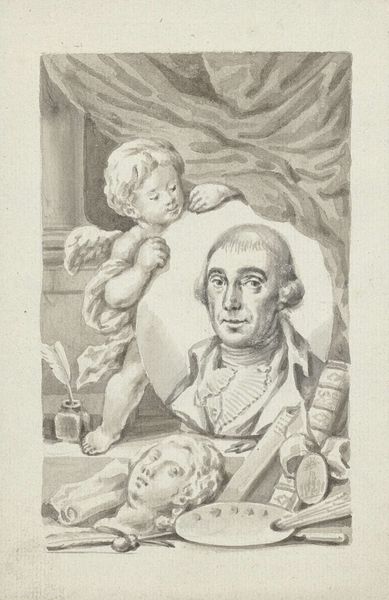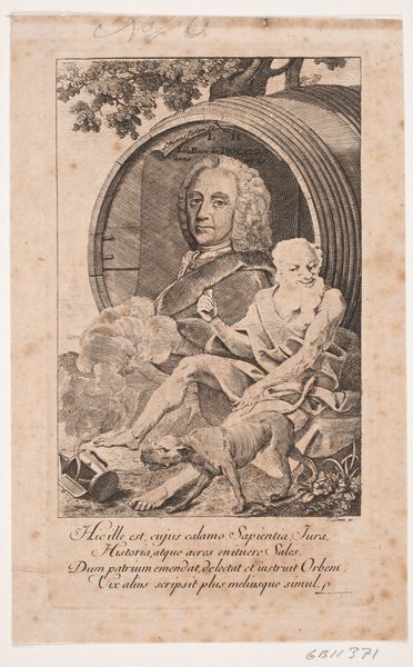 Editor: We’re looking at Jan Maurits Quinkhard's “Family Portrait of Jan van de Poll, Banker and Burgomaster of Amsterdam with his young Son Harman,” painted in 1755. It’s rendered in oil, and the first thing that strikes me is the composition – the subjects' gaze is so direct. What do you notice in terms of the painting’s formal qualities? Curator: Note how the painting employs a limited palette: mainly somber browns and reds contrasted by stark white. Observe the interplay between the man's strong, almost architectural pose, which commands the left half of the canvas, against the son's less assertive presence. The draping of the red shawl also creates strong diagonals that cut across the picture plane and draw the eye. How does this visual dynamic speak to the figures’ relationship and power balance? Editor: So, the lines and colors emphasize their connection but also subtly highlight their different status? The father's gesture feels very declarative, but the son’s pose feels quite different. Curator: Precisely. His gesture may be one of presentation or possession. Note the different handling of paint as well. The rendering of the father's face and hands exhibits a greater degree of finish and precision in comparison with that of the son's dress. What might such differences in texture contribute to our reading of the work? Editor: I see it now - it does look like different artists might have done the details. The father's textures create more depth and authority compared to his son. The attention to detail in the fabric and architectural background versus the almost flat landscape also speaks volumes. Curator: Indeed. Such analysis reveals the layers embedded within the seemingly straightforward. Thinking through line, form, and color, we can unravel a wealth of meaning in this artwork. Editor: Absolutely. By closely observing Quinkhard's painting, I've gained a new appreciation for how formal elements can really shape our perception of the subjects and the scene.