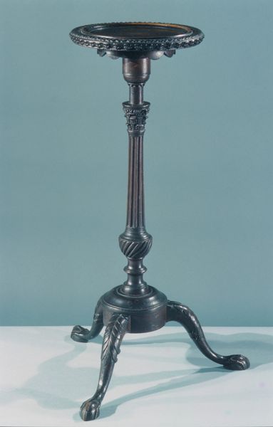 Editor: So this wooden coat stand, designed around 1867 by Christopher Dresser, really strikes me as… unexpected. It's got this stern geometric base that clashes a little with the almost cartoonish hat rack section on top. What am I missing? How do you interpret this piece? Curator: It's easy to see that contrast. Now, Dresser was working in a period of immense social change in England, and the Arts and Crafts movement arose, in part, as a reaction to the Industrial Revolution. Do you see elements here that speak to that tension? Editor: I suppose I see a longing for hand-crafted design versus something mass-produced. Is the geometric symmetry also a statement? Curator: Absolutely. Dresser advocated for accessible design, embracing geometric forms to reduce production costs without sacrificing beauty. But beyond accessibility, consider the Victorian era's rigid class structures. By democratizing design, was Dresser also subtly challenging these hierarchies? Was this aesthetic statement an accessible jab? Editor: That's a fascinating way to consider it! So the coat stand becomes not just functional art but a subtle form of social commentary. It seems both forward-thinking and rooted in its time. Curator: Exactly! We often view design as purely aesthetic, but objects like this remind us to interrogate their underlying cultural narratives. Next time you see an object, consider the "who," "what," "where," and "why" to unpack possible social motivations and influences. Editor: Thanks. It's like this coat stand held not just coats but complex social dialogues all along!