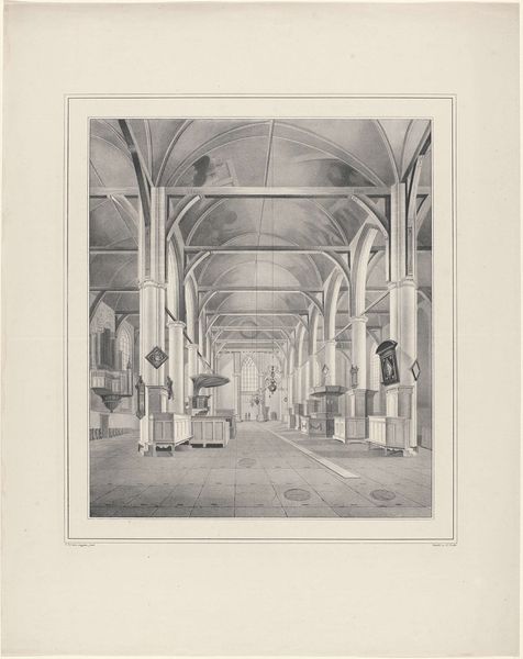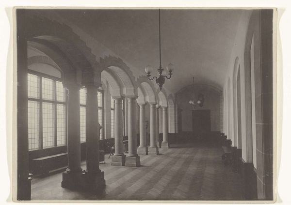 This photograph, "Interieur van de grote kerk te Vollenhove", captures the interior of a large church, its architectural details rendered in subdued tones. The composition is dominated by receding lines of arches and columns that draw the eye deep into the church's space. Notice how the anonymous photographer plays with the structural elements. The arches, repeated rhythmically, create a sense of depth and continuity. The light filters through the windows, casting shadows that articulate the form of the architecture. The photograph evokes a feeling of austere grandeur. Here, the photograph invites us to consider the relationship between space, light, and form. The photographer uses these elements to structure our perception, leading us to contemplate the essence of the space itself. It reminds us that the aesthetic experience is rooted in the structural and material qualities of the artwork.