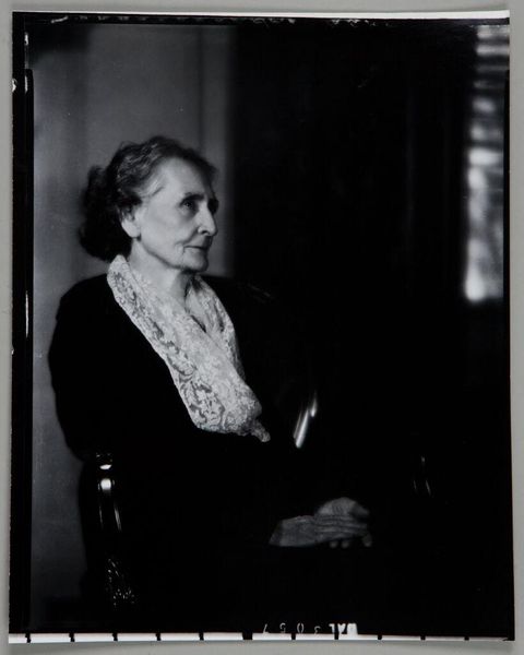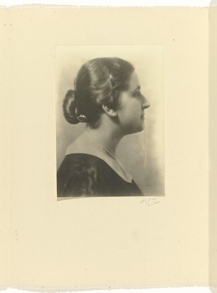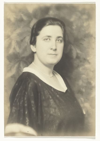 Editor: Here we have Morton Schamberg's photograph "Regena," a gelatin silver print from 1917. The photograph has an almost haunting quality, due in part to the sitter's serious gaze and the soft, diffused lighting. What strikes you when you look at this piece? Curator: Immediately, I'm drawn to the context in which Schamberg created this portrait. In 1917, the United States was on the brink of entering World War I, and there was a lot of social and political change. How might this historical backdrop have informed Schamberg's approach to photographing Regena? Did it shape the way she presented herself to the camera? Editor: That’s a really interesting point. It definitely adds a layer of complexity. I hadn't really considered that. The somber mood could be connected to the unease of the era. Curator: Precisely. Also, think about the societal expectations of women during that time. While the suffrage movement was gaining momentum, women were still largely confined to domestic roles. The photograph invites questions about Regena’s identity, her own ambitions and perhaps also her possible subversion of prevailing social codes. Her steady gaze confronts the viewer, defying any simple categorization. What do you make of that? Editor: That steady gaze suggests that she's a strong, independent person. Do you think Schamberg was deliberately trying to challenge the traditional representation of women in art? Curator: It’s highly possible. Schamberg was associated with the avant-garde, known for pushing boundaries. This photograph can be interpreted as a subtle act of resistance, a reclaiming of female agency through the photographic lens. By focusing on her gaze, Schamberg gives Regena power. Editor: This makes me look at "Regena" in a completely different light! I will remember to analyze art using history and political and social movements of the artwork’s period. Thanks for illuminating it so thoroughly. Curator: Absolutely! It is imperative that art’s multifaceted nature remains a dynamic and enriching experience, opening avenues for critical dialogue, fresh ideas and thoughtful considerations.