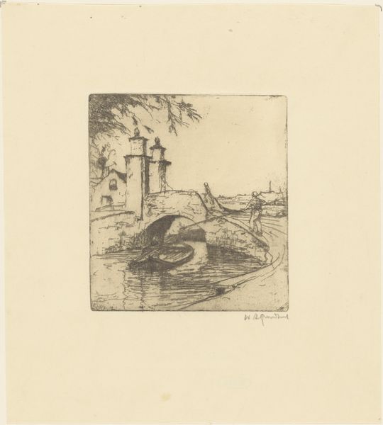 Curator: It reminds me of a fever dream captured with the delicate precision of a watchmaker. A bit unsettling, really, but captivating. Editor: And that's Rodolphe Bresdin for you! This is "Old Houses and Fishing Boats," rendered in pen and ink, sometime during his rather turbulent lifetime. You can find it here at the Art Institute. It has that fantastic frenetic energy. Curator: Frenetic is right! It feels like peering into another world. Look at the details in the houses—all these spindly lines creating such depth and texture. And then, these boats with, almost ghostly figures in them… it's all slightly off-kilter. Editor: Absolutely. Bresdin's engagement with etching and drawing reflected his complex social critique. While his contemporaries focused on grandeur and progress, Bresdin portrayed the grit and the often-overlooked stories of urban life and the working class. Curator: I'm also drawn to how the perspective seems warped. The boats in the foreground feel as important as the buildings, challenging that established hierarchy in painting. It’s playful, wouldn't you say? Almost defiant. Editor: Defiant, yes, but also revealing. Bresdin was deeply invested in creating affordable prints, broadening art access. This commitment mirrors Ukiyo-e's aim to bring art to a wider public. These prints acted almost as radical documents circulating commentary, ideas. Curator: It’s the kind of work that makes you lean in close, discovering something new each time. There is something comforting about the familiarity and accessibility. Editor: The dense detail really does invite close inspection. In many ways, Bresdin democratized not just access to art, but the very act of looking. “Old Houses and Fishing Boats" captures a particular historical and social context, but ultimately offers something profoundly intimate. Curator: Ultimately, it’s a reminder that even in the humblest of scenes, the echoes of dreams and dissent can resonate.