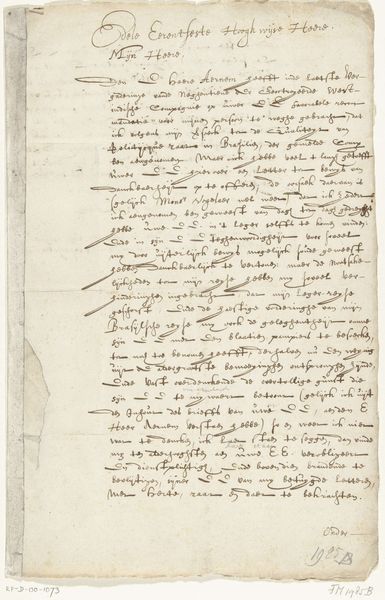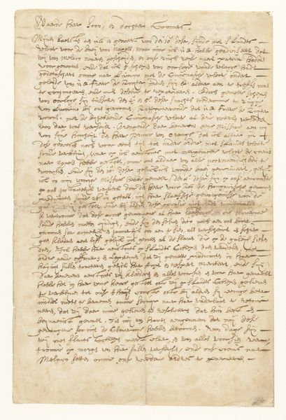 Jan van de Velde the Elder created this letter to Jan van de Velde the Younger in 1613. The very act of writing, of preserving words on paper, transforms transient thoughts into enduring symbols, much like the creation of mythological archetypes. The letterform itself, carefully inscribed with a quill, becomes an icon, reminiscent of ancient scrolls bearing profound truths. Consider the evolution of script: from the sacred hieroglyphs of the Egyptians, each symbol representing cosmic forces, to the flowing cursive here, where personal sentiments are captured. The script, once a tool for divine communication, now conveys earthly concerns, yet echoes of the past linger. One might ponder, as the letter traverses time, how its meaning shifts, influenced by individual interpretations and collective memory. Like the enduring images of the past, this letter engages us on a subconscious level, reminding us of our shared human experience and the enduring power of visual symbols across time.