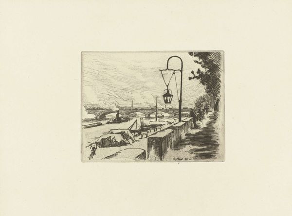 "The Louvre, Viewed from the Pont-Neuf," was created by Auguste-Louis Lepère as a plate in the "Le Long de la Seine et des Boulevards" series, sometime between 1849 and 1918. Lepère’s detailed print captures the grandeur of Paris, but it also hints at the social fabric of the city. The figures along the Pont-Neuf provide a glimpse into the everyday lives of Parisians. Lepère, deeply involved in the revival of wood engraving, sought to represent modern life. Lepère was committed to depicting the experiences of ordinary people. His art offers a look into the lives of a diverse populace against the backdrop of one of the world's most iconic cities. The gaze of the people on the bridge looking toward the Louvre creates a sense of shared space and history. This print reflects the complicated relationship between the city's landmarks and its inhabitants. It invites us to consider who has access to the city and whose stories are told.