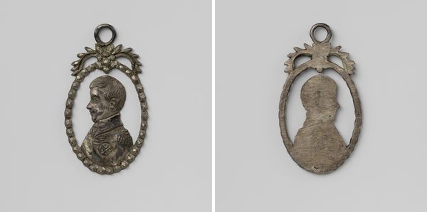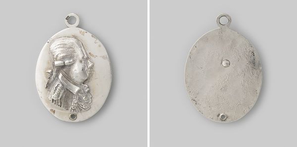 This portrait of Willem V, Prince of Orange-Nassau, was made by an anonymous artist in silver. It shows the head of Willem in profile, set within an oval frame, topped with a bow and ribbons. What's fascinating here is how the artist has used the material of silver to convey status. Silver is not only valuable, it's also highly malleable, allowing for intricate detail. Look closely, and you'll notice the care taken in rendering Willem's features, his wig, and his garments. The sheen of the metal itself adds to the sense of refinement. Consider the silversmith's process. Each line and curve required skilled handwork. The creation of this image was time-consuming, and involved a high degree of craftmanship, and by extension social sophistication. This wasn't just about representing the Prince, it was about celebrating the very act of creation. By using silver, and showcasing the skills needed to work it, this small piece elevates itself beyond mere portraiture.