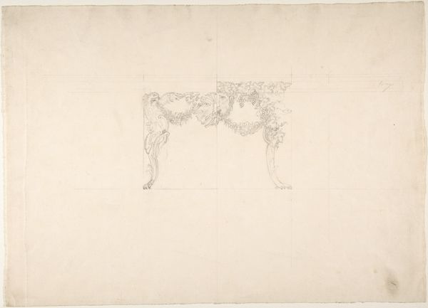 Curator: Here we have "Design for a Chest," dating from between 1765 and 1795. The piece, currently held at the Metropolitan Museum of Art, is an anonymous work rendered in pencil and etching. Editor: It's delicate, almost ethereal. The faint pencil lines give it a ghost-like quality. The baroque details and swirling ornamentation, it feels almost excessive, right? Curator: Excess was certainly a hallmark of the era. Remember, this would have been a period of aristocratic dominance, and material display was paramount. Think of the chest itself – a luxury item, made to contain other luxuries, meant to project status and wealth. Editor: Absolutely. And thinking about who had access to such ornate objects raises questions of access and privilege. It reflects a world where craft and beauty were explicitly tied to power structures. I can't help but wonder, what did it mean for the craftsmen who labored on pieces like this knowing it was for the elite only? Curator: That's a valid consideration. Guild systems tightly controlled production, often limiting access to knowledge and skills based on social status and gender. And while artisans took pride in their work, their labor undeniably contributed to upholding existing inequalities. This drawing, being a design, makes one think of the intent behind the final object as opposed to labor needed to realize that intent. Editor: Yes, looking at this through a contemporary lens invites us to deconstruct these past power dynamics. Where can this aesthetic vocabulary be reapplied towards justice today? Or does this lineage need to be altogether discarded? These items remain visually alluring despite what created them. Curator: A reminder that the beautiful and the unjust can often coexist and even reinforce each other. Considering this interplay enriches our experience of art, making us more thoughtful consumers and citizens. Editor: Precisely, grappling with art history shouldn't just be about admiration; it’s about critical engagement with the socio-political implications embedded within these objects and styles. Curator: Thank you for this reflective reading, this provides deeper insight into the political roots in art objects such as “Design for a Chest”.