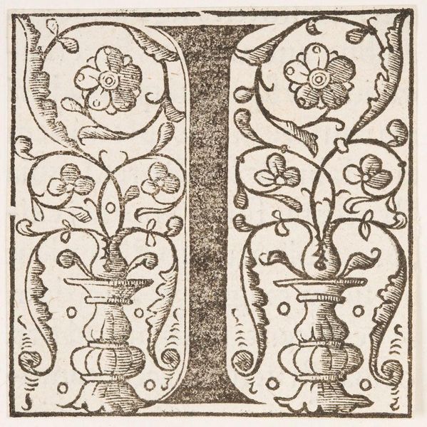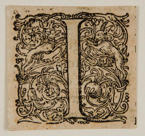 Curator: Here we have "Letter I," an intriguing engraving from an anonymous artist, housed at the Harvard Art Museums. What's your immediate reaction? Editor: Chaos! A beautiful, ornamental chaos. My eyes dart around trying to find a place to land. It feels like a party, but I'm not sure what's being celebrated. Curator: The composition is remarkable; a playful arrangement of human and animal forms intertwined with architectural motifs. Notice the meticulous detailing—the textures, the line work—all contributing to a sense of layered depth. Editor: It's wonderfully unsettling. Are those mermen? And look at those strange little monkey-esque figures. I keep thinking this elaborate "I" must stand for something more. A secret message maybe? Curator: Perhaps. Or simply an aesthetic exploration, a celebration of form for its own sake. The artist may have been more interested in the visual effect. Editor: I prefer the secret message theory. It adds a layer of intrigue that’s hard to resist. Curator: Either way, it offers a window into the artistic practices of its time, inviting us to consider the possibilities of visual communication. Editor: A lovely bit of anarchy, framed so perfectly. I'm glad we stumbled upon this piece today.