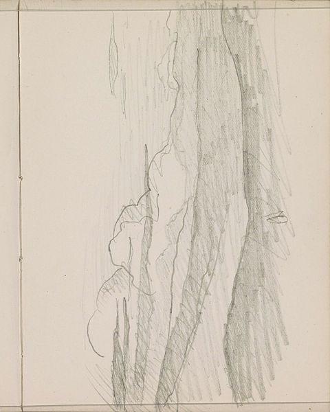 Editor: So, here we have Hans Baldung’s “A deep gorge with a rushing stream at the bottom,” created sometime between 1500 and 1549. It’s a charcoal drawing on paper. What I immediately notice is the way the artist uses line to convey such immense depth and volume – there's a real sense of drama. How do you interpret this work, particularly the use of such a seemingly simple medium? Curator: The apparent simplicity is precisely where the symbolic weight resides. Landscape, especially in this period, becomes a mirror reflecting inner turmoil and the sublime power of nature, often embodying spiritual or psychological states. Look closely – does this gorge not resemble, in some way, a chasm in the psyche, a confrontation with the unknown? Editor: That's fascinating. It didn’t strike me that way at first, but now I see that the way the gorge almost seems to swallow the light hints at a psychological darkness. How would this kind of imagery connect with the cultural anxieties of the Renaissance? Curator: Consider the Reformation, the plague, and a general sense of uncertainty; the craggy rocks could symbolize resilience in the face of adversity. Water is, of course, often a symbol of both cleansing and chaos. Here, it is ‘rushing,’ powerful, carving away the landscape. It begs the question: what is being eroded away here, literally and figuratively? Editor: That connection to erosion – physically and perhaps morally – really deepens my appreciation. The drawing is not just a picture of a landscape; it's a statement about transformation and the forces that shape us. Curator: Exactly. It invites us to reflect on how these symbolic landscapes speak across time, echoing through personal and collective consciousness. The memory of our vulnerability to natural forces, the human condition… Baldung's gorge captures something universal. Editor: I never thought a drawing of a landscape could hold so many layers of meaning! It's changed how I’ll approach interpreting art.