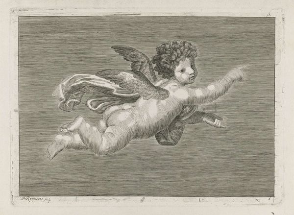 Frédéric Théodore Faber created this etching, entitled "Vliegende faam", at the beginning of the 19th century. Here we see the personification of fame in a Dutch take on the classical style. The winged figure trumpets their achievements while dropping celebratory laurel wreaths in their wake. In the Netherlands during this period, there was a thriving industry in producing prints for decorative and commemorative purposes, often distributed and sold through established networks of printmakers and publishers. One might consider the role of institutions like the "Felix Meritis" society in Amsterdam, which promoted arts and sciences, as a backdrop to the creation and consumption of such imagery. Was this celebratory image meant to promote or reflect a particular sense of national pride? To understand the cultural meanings embedded here, we might turn to period dictionaries of symbols or study the illustrated books that were circulating at the time. The meanings of art are always tied to specific social and institutional settings.