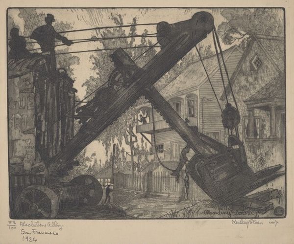 Nicholas Bervinchak created the etching *Toiling Miners*. Born in Pennsylvania, Bervinchak was the son of Ukrainian immigrants, and he grew up in a coal mining region. This print gives us insight into the lives and labor of the working class in the early 20th century. It also prompts consideration of the immigrant experience and the pursuit of the American dream. The artist evokes both the physical labor and the emotional weight of the miners' work. The dark, gritty tones of the print convey a sense of the harsh conditions and inherent dangers of their occupation. Bervinchak emphasizes the humanity of the workers, portraying them with dignity and resilience. This piece not only documents a specific historical moment, but also serves as a reminder of the human cost of industrial progress. It invites us to reflect on the sacrifices made by these workers and the ongoing struggle for fair labor practices.