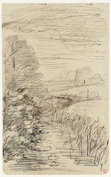Maria Johanna Goemans made this drawing, Kale dennenstammen op glooiend terrein, with pencil, and the quick, loose marks tell us that Goemans wasn’t trying to capture a specific scene but more an impression, a feeling of being in this landscape. Look at the texture of the paper itself and how it interacts with the graphite, creating a sense of depth and atmosphere. The trunks of the trees are rendered with simple, vertical strokes. There’s something really immediate and honest about the way the artist has approached the subject, almost like she’s inviting us to collaborate in completing the image. I keep thinking about Morandi and his drawings of bottles, there is something similar in the way Goemans abstracts the natural world, reducing the trees and hillside into rhythmic marks. Ultimately this piece is about openness and ambiguity, inviting us to pause, and to bring our own experiences to the act of looking.