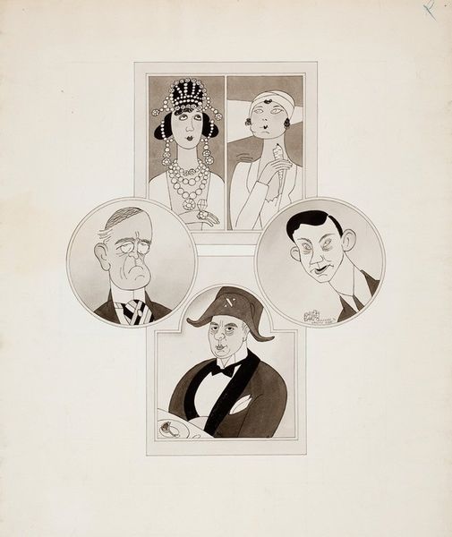 Juan Gris made this drawing, Les Nains, with ink and wash on paper. The image depicts a group of people, the title translates to "The Dwarfs," and we can see one figure is noticeably smaller than the rest. The artwork was made in France and likely illustrates Parisian society, known for its rigid class structures. The figures are dressed in formal attire, suggesting an upper-class social event, perhaps at the opera or theatre. The exaggerated hats worn by the women and the men's formal suits reflect the fashion of the time, but are perhaps intended as caricatures of high society. Gris, a Spanish artist working in France, was part of the Cubist movement. Cubism challenged traditional representation by fragmenting objects and reassembling them in abstract forms. Considering Gris’s artistic and political affiliations, we might see this work as a subtle critique of social hierarchies. To further understand this image, one might consider periodicals, fashion magazines, and social commentaries of the period. Art provides insight into social norms, power dynamics, and cultural values, all shaped by the artist's unique context.