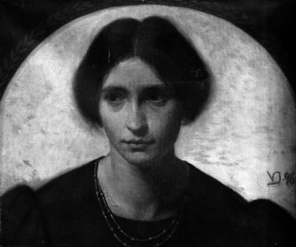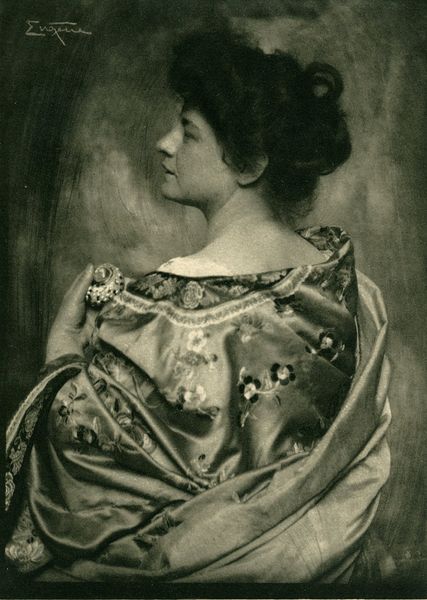 Editor: This is Denman Waldo Ross's "Profile Portrait of a Woman." It's a striking piece, rendered in what appears to be oil on canvas. The woman's serene expression creates a very calming mood, but what do you see in this portrait? Curator: This stark profile echoes a long line of portraiture, from ancient coins to Renaissance cameos. The profile, detached yet detailed, speaks of public image and private self, doesn't it? It reminds me of Roman busts meant to project power, or even early photography attempting to capture a lasting likeness. Editor: So, it's about how we want to be seen, not necessarily who we are? Curator: Precisely. The artist utilizes this age-old structure to convey something timeless about representation. What do you make of the necklace? Editor: It adds a delicate touch, softening the austere lines. I didn't really notice it at first. Curator: Those details often carry symbolic weight, whispering clues about social standing or perhaps even personal narrative. It is intriguing to think about the stories hidden within these choices. Editor: I'll definitely look at portraits differently from now on!
