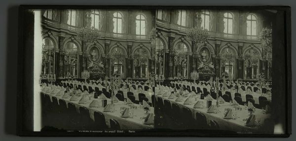 Curator: This silver gelatin print by Martin Schweig, presented in an elevated view, captures a church during a sermon. Editor: The image's high contrast gives it a stark, almost unsettling atmosphere. It’s as though the architecture itself is observing the congregation. Curator: Considering Schweig’s likely background as a commercial photographer, this might be seen as a study in composition and light, a kind of architectural record-keeping. The labor involved in setting up such a shot would be considerable. Editor: But the lines! The rigid rows of people mirror the church’s structural order. There’s a visual echo between the individual and the institution. Curator: Exactly! And think about the social function of this photograph—perhaps documenting a moment of community, or even serving as promotion for the church itself. Editor: I see a compelling visual commentary on control, order, and faith—all conveyed through stark light, shadow, and form. Curator: It leaves me thinking about the interplay between photographic labor and faith. Editor: And I'm left pondering the power of simple composition to evoke complex emotions.