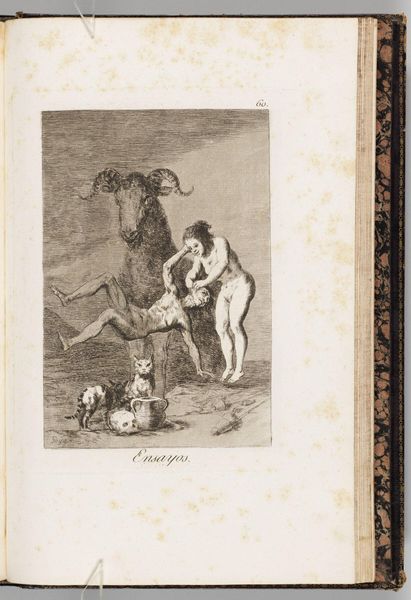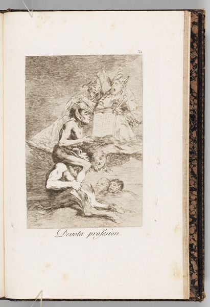 Editor: Here we have Goya's haunting print, "The Sleep of Reason Produces Monsters." It's a chaotic scene, really. The sleeping figure seems besieged by bats and owls. What's your take on this, as an image? Curator: Ah, Goya. This isn't just an image, it's a plunge into the anxieties of the Enlightenment! The inscription itself, that 'sleep of reason,' suggests what happens when we abandon logic. It's a breeding ground for our fears, our superstitions, those winged creatures of the night. Aren’t we all a little monstrous when reason takes a nap? Editor: I guess we are. So, it's like Goya is warning us? Curator: Precisely! Sweet dreams can quickly turn into nightmares, especially when we stop questioning. Editor: I'll remember that next time I'm up late studying. Thanks!