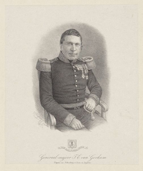 This is a portrait of Jan van Swieten, made by Nicolaas Johannes Wilhelmus de Roode, using an unknown material. Here, we are met with a spectacle of military regalia: epaulettes, medals, and ornate embellishments. These symbols are not mere decorations; they speak to a tradition of power, valor, and societal order, steeped in history and cultural significance. The medals adorning van Swieten’s chest, for instance, echo the ancient Roman practice of awarding laurel wreaths for military triumph, a symbolic gesture that has traversed centuries. Yet, consider how these motifs have shifted. The epaulette, once a functional part of military dress, has morphed into a symbol of rank and authority, a visual shorthand for leadership. Think of how such symbols resonate—the subconscious weight they carry, stirring feelings of respect, awe, or even unease. Van Swieten stands erect, a posture that goes beyond a mere physical stance; it is a performative act, an embodiment of duty, connecting him to countless other portraits of military figures across time. These symbols are not static; they evolve. They are fragments of a collective memory, resurfacing in new contexts, acquiring new meanings, and continuing to exert their influence on our psyche.