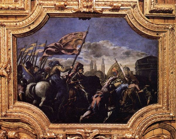 Claudio Beaumont's "The Battle of Pharsalia" captures a moment of intense conflict, rendered with oils on canvas. At its heart, the raised arm of the central figure strikes a chord deep within our collective memory. This gesture, ubiquitous throughout art history, transcends mere representation of action. Consider the orator, the emperor, or the saint. Each, with a raised hand, lays claim to authority, commands attention, and implores a higher power. But Beaumont's figure is embroiled in carnage. This duality reminds us of the inherent tension between power and violence, an echo of ancient struggles rendered anew. The chaos of battle serves to heighten the emotional charge, a feeling that finds resonance in Delacroix's revolutionary scenes. The motif evolves, taking on new significance, yet its primal appeal remains undiminished. It is a testament to the enduring power of symbols to tap into our deepest subconscious.