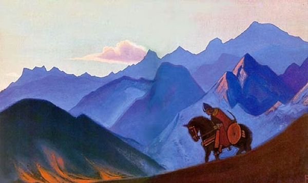 Nicholas Roerich’s painting, *Teacher’s Order*, presents us with mountains rendered in tempera, a fast-drying, matte paint traditionally made with egg yolk. Roerich was deeply interested in the spiritual traditions of Asia, and his choice of tempera reflects this. Before the rise of oil painting, tempera was the medium *par excellence* for icons. Notice how the tempera gives the mountains a crystalline quality. The paint allows for sharp, well-defined forms, suiting the stark peaks. Roerich applied it in thin, even layers; the effect is not so much illusionistic as it is symbolic. The artist made this painting during a time of enormous upheaval in Russia, including the Bolshevik Revolution and subsequent Civil War. Roerich sought spiritual values that transcended these conflicts. Tempera, with its connection to enduring traditions, was the ideal medium for conveying this message. When you look at a painting like this, remember that the material and the making are inseparable from its deeper meaning.