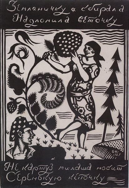 Editor: This is Ernst Ludwig Kirchner’s woodcut, "Woman Buttoning Her Shoe." The high contrast and angular lines give it a sense of unease, almost anxiety. What do you see in this piece, especially considering the historical context? Curator: Kirchner’s work embodies the anxieties of pre-war Germany. This woman, rendered with harsh lines, exists within a society grappling with rapid industrialization and shifting gender roles. Notice the unsettling composition and the male gaze implied by her posture. How does her act of buttoning a shoe become a commentary on the commodification of women's bodies? Editor: So, it's not just a woman getting ready, but a statement about societal pressures and objectification? Curator: Precisely. Kirchner used Expressionism to expose the psychological impact of a world in turmoil, inviting us to question the power dynamics at play. Editor: That's a completely different way of seeing it. Thanks! Curator: My pleasure. Art can be a powerful tool for social critique.