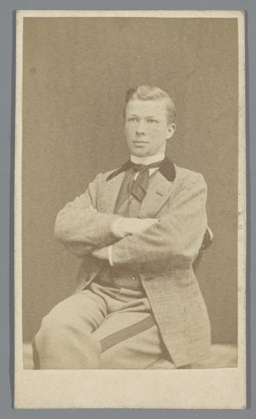 Bernhard Hakelier created this small portrait of an unknown man, possibly J. G. Spangenberg, sometime between 1848 and 1910. During Hakelier’s lifetime, photography moved from a niche practice to a widely accessible medium, profoundly impacting how people saw themselves and others. This portrait, with its formal composition, reflects the socio-cultural values of its time. The man's identity, though uncertain, is presented with dignity and a degree of formality, typical of bourgeois portraiture. His attire and the carefully controlled lighting speak to the sitter’s desire to present a respectable image. Consider the gaze of the sitter. There is a directness that seems to ask us to consider what aspects of identity are being performed, and what are being concealed. The photograph offers a glimpse into a life, inviting speculation about the narrative contained within this preserved moment.