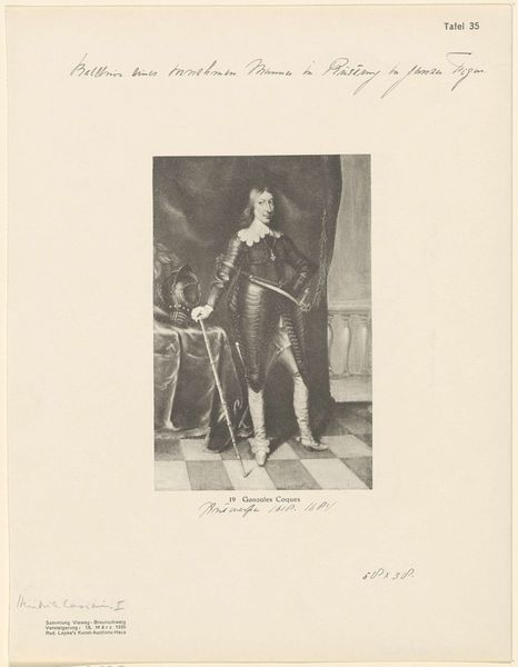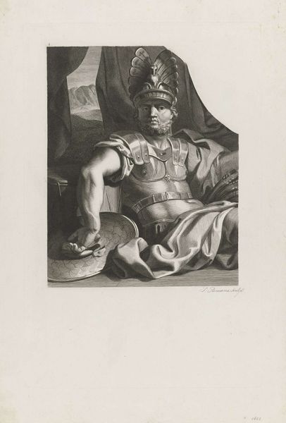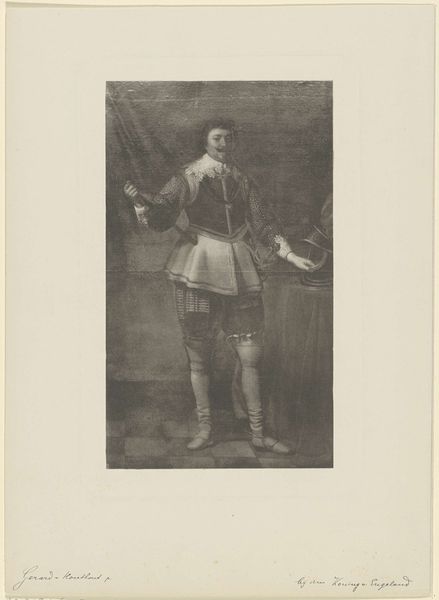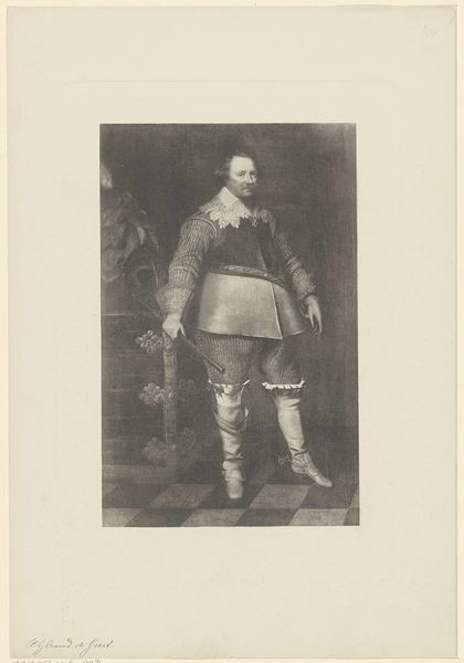 Curator: Let's discuss this portrait, currently held in the Rijksmuseum. It’s an engraving from the 19th century entitled “Portret van Hendrik Casimir I, graaf van Nassau-Dietz.” Editor: It's striking how this piece renders a sense of austere formality despite the apparent flatness inherent in the engraving process. Almost feels staged, the subject perfectly postured. Curator: That formality speaks to the historical moment—the representation of power and status. Hendrik Casimir's identity as a count dictated that visual vocabulary. It reinforces the existing hierarchies and systems of authority in that period. Note how the detailing in his armor and clothing, although meticulous, creates a visual echo of that social order. Editor: Absolutely. And look closely, it also speaks volumes about craft production, doesn't it? The engraver is really playing with contrasts; using fine lines to convey texture in both fabric and metal. Also interesting the support is only paper which suggests a certain type of print and dissemination. Curator: Precisely! Think about the wider social impact. These prints, accessible forms of portraiture, helped to propagate his image, thus solidifying his rule and persona, becoming symbols circulated within the political structure itself. Also interesting to consider what type of sitter is implied, what this portrait tells us of masculine ideals of the day? Editor: It does offer insight on ideals, doesn't it? While obviously not painting, there's a question around time for this to be engraved in order to make multiples of prints that had to be circulated among patrons or to friends and colleagues... the use of portraiture in the period as a networking and propaganda vehicle to be discussed as well. Curator: I agree, a rich matrix of power dynamics playing out within what appears at first glance a simple, formal portrait. A great artwork from which to discuss not just a sitter, but sitter as symbol. Editor: A great reminder that art acts as labor which gives the patron more visibility. Let’s also be cognizant of these dynamics in current art settings.