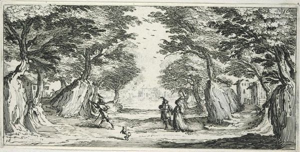 Jan Caspar Philips made this etching, entitled "Augustus: hooioogst," sometime between 1700 and 1775. The printmaking process is an indirect one: the artist would have used a sharp needle to draw an image into a coated metal plate, which was then submerged in acid. This would bite away the exposed lines, which then hold ink. The plate is then pressed onto paper, transferring the image. The etched lines capture a scene of labor: the harvesting of wheat, combined with leisure. We see laborers at work in the fields, and children bathing in a stream. There's a striking contrast between the wheat harvest, connoting hard work, and the carefree abandon of the youth. The text below the image reinforces this contrast, highlighting both "pleasure" and "gain." The print is a reminder that all images are made by human hands, even those that depict mechanized or agricultural labor. This connects the work to broader issues of labor, class, and the relationship between work and leisure in 18th century society. It asks us to consider the value of both work and play.