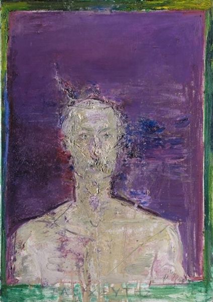 Curator: Here we have Marlene Dumas' 1985 oil painting, "The White Disease." It's an evocative example of her neo-expressionist style, focusing on a portrait. Editor: Haunting! My initial feeling is one of profound sadness, even alienation. The paleness is almost spectral. It’s like a ghost trying to materialize through layers of grief. Curator: The title certainly leans into that spectral interpretation, doesn't it? Dumas often explores themes of mortality, vulnerability, and societal illness in her work. This image carries the weight of those concerns through its symbolism. Notice how the face lacks clear definition, as though obscured or fading. The symbolic implications of a figure fading are profound. Editor: Exactly! That lack of clear definition unsettles me. And those eyes – so bright, almost electric blue – pierce through the pallor. It's a very unnerving contrast that draws the viewer closer, against their own better judgment. Curator: Indeed, the choice of such vibrant eyes set against such an achromatic face introduces tension and drama. From my point of view, the choice underscores the contrast that speaks volumes about humanity's capacity for both fragility and endurance. It prompts contemplation about our emotional vulnerabilities, echoing sentiments rooted in a past culture, memory, and fear. Editor: Perhaps she wanted us to confront the fragility of identity, too. How easily we can be "infected" or altered by life’s circumstances, fears, societal pressures. Curator: Absolutely. As an exemplar of the expressionist art movement, “The White Disease” urges us to probe deeper meanings and messages behind it. The face in itself holds memories of earlier artistic approaches on one hand, and introduces new ways of representing existential human condition in our times. Editor: This canvas whispers secrets best not told! Even as someone intimately familiar with Dumas' style, there's a depth here that goes straight to the bone. The overall image embodies melancholy and mystery! Curator: It seems to me that, in the end, Dumas gifts us not answers but prompts for contemplation on how the past continues to exist. Editor: Precisely! Thanks for sharing that perspective; now I will definitely return here again for deeper musings!