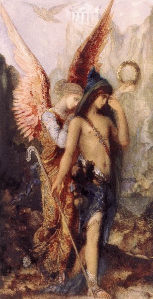 Gustave Moreau painted "Helene glorifiee" sometime in the later half of the 19th century. Moreau was working in France at a time of intense social and political change. His painting reflects the artistic and intellectual trends of the Symbolist movement, which sought to express subjective emotions and ideas through symbolic imagery, often drawn from mythology and literature. In this painting, Helen of Troy is the central figure, surrounded by adoring figures. The painting offers a perspective on female beauty and power, portraying Helen not just as a woman, but as an idealized, almost divine figure. The male figures around her reflect traditional gender dynamics of the time, where women were often objectified and placed on a pedestal. This painting invites a reevaluation of the stories we tell about women in history and myth. It asks us to consider the ways in which women are both glorified and constrained by societal expectations.