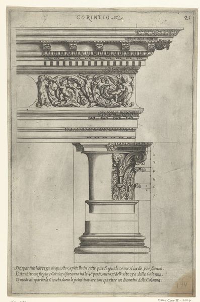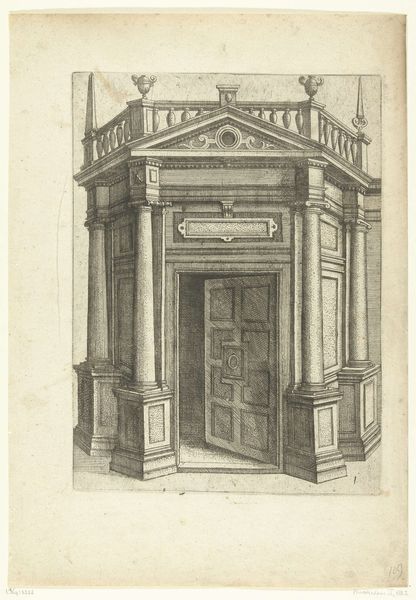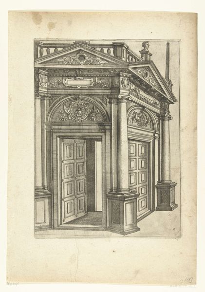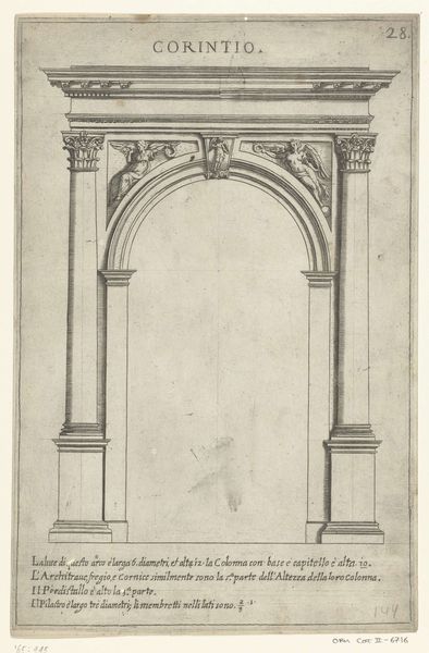 Curator: This is an engraving from sometime between 1500 and 1549, attributed to an anonymous artist, titled "Deel van een klassieke triomfboog," or "Part of a classical triumphal arch." Editor: Stark. The geometric exactness feels quite austere, almost cold, even though it's just a fragment. The materiality of the engraving, that precise line work, emphasizes the form itself. Curator: Absolutely. This work sits squarely within the Italian Renaissance and its fascination with classical forms. The triumphal arch was a powerful symbol of Roman imperial authority, so its revival here signifies a deliberate attempt to link contemporary rulers with that legacy. Editor: I'm intrigued by the production. Engraving demanded a certain skill set, a specific labor to render this idealized structure. I'd like to know more about who was making prints like these and for what audiences. Were they intended for other artists to use as templates? Curator: Possibly. Prints like this served multiple functions. They were collected by connoisseurs, but they also circulated as models for other artists and architects. This particular print could have influenced the design of buildings or served as a record of existing classical structures. The printing press democratized access to classical imagery. Editor: Democratization… to an extent. Remember that producing engravings, disseminating them, required significant capital and infrastructure. The materiality of the print speaks to the economic systems in place, to who controlled the means of production, to whom this 'classical' imagery was available. Curator: A valid point. It's important to consider how the rise of printmaking intersected with the socio-political dynamics of the era. These images both reflected and shaped the prevailing power structures and ideals. This piece speaks to the construction of authority, both architectural and social, within the Renaissance context. Editor: Exactly. Even a fragment, a "part," as the title states, can reveal a whole system of artistic labor and material constraints underpinning it. The triumphal arch only gets built, only exists because someone knows how to turn an idea into a material object. Curator: So it seems both the idealized form and the practical process were linked in spreading Renaissance ideals and in defining political imagery of the period. Editor: Indeed, a connection forged in the lines of the engraving itself.