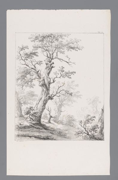 Editor: This delicate pencil drawing, "Landweg met knotwilgen" by Barend Cornelis Koekkoek, made around 1844-1845, captures a tranquil scene. There's a quiet stillness in the image, almost melancholic. What draws your eye, and how do you interpret the symbols within this landscape? Curator: The composition invites contemplation. Note the prominence of the gnarled willow trees. They're not simply trees; they stand as enduring witnesses, their forms shaped by time and perhaps, human intervention. These specific willows often symbolize resilience and adaptation. See how they border the path? They guard the liminal space between known and unknown. Editor: Liminal space? Curator: Yes, the road itself is a powerful symbol, a visual metaphor for a journey, not just of the body but also the soul. Ask yourself, where does the road lead, and what kind of journey does it imply? Is it a spiritual quest, an escape, or perhaps a return? Editor: That's interesting. So the trees aren't just scenery, they’re almost like guides or gatekeepers. Curator: Precisely. And consider the artistic period—Romanticism. Nature, especially in its wild or sublime form, became a mirror for human emotions and spiritual yearnings. A seemingly simple landscape becomes a container for deep cultural memory, reflecting humanity’s ongoing dialogue with the natural world. Notice how even the type of tree has resonance with local customs of this period and how land was used. Editor: I hadn’t thought of it that way. I was focused on the aesthetic, but now I see the depth in the symbolism and historical context. Curator: Exactly! The artist imbued this landscape with layered meanings that transcend mere representation. Editor: It really shifts my understanding of Romantic landscapes. Thanks so much! Curator: My pleasure! Visual analysis is richer when infused with the past and cultural memory.