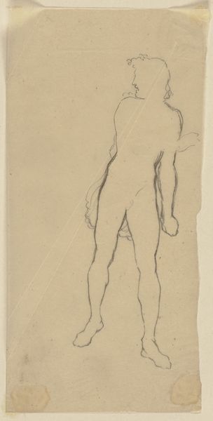 This is a pencil drawing of a nude child by Jozef Israëls. Israëls, who lived from 1824 to 1911, was part of the Hague School, a group of Dutch artists who, in the later 19th century, chose to paint in a more somber and realistic style. Israëls, of Jewish descent, sought to capture the essence of human experience, often focusing on themes of poverty and resilience. Here, the subject is a child, rendered with an innocence that transcends time. The child's vulnerability is palpable; we become implicated in a historical gaze that often exploited children from marginalized communities. While the drawing may at first seem simple, it evokes deeper questions about representation, innocence, and the intersection of art and social responsibility. It invites us to reflect on the complexities of seeing and being seen.