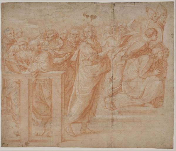 Sante Creara de Fochegioli made this drawing of Sts Dominic, Catherine of Siena and a group of other saints with pen and brown ink. Note how the composition is arranged, with the figures clustered closely, creating a sense of unity and shared spiritual experience. The artist uses the limited colour palette to its full potential, building contrast between light and shadow to suggest form and volume. Look closely at the line work, it is used with great confidence and precision to define the contours of the figures. In a semiotic sense, the figures themselves function as signs. Dominic and Catherine are visual symbols that connect to the broader narrative of faith. Gestures and expressions are designed to communicate devotion and the importance of religious life. In this drawing, we see Fochegioli engaging with the visual and cultural codes of his time. Through the interplay of line, form and composition, the artist invites us to contemplate the narratives of devotion and spirituality. This becomes more than an aesthetic encounter.